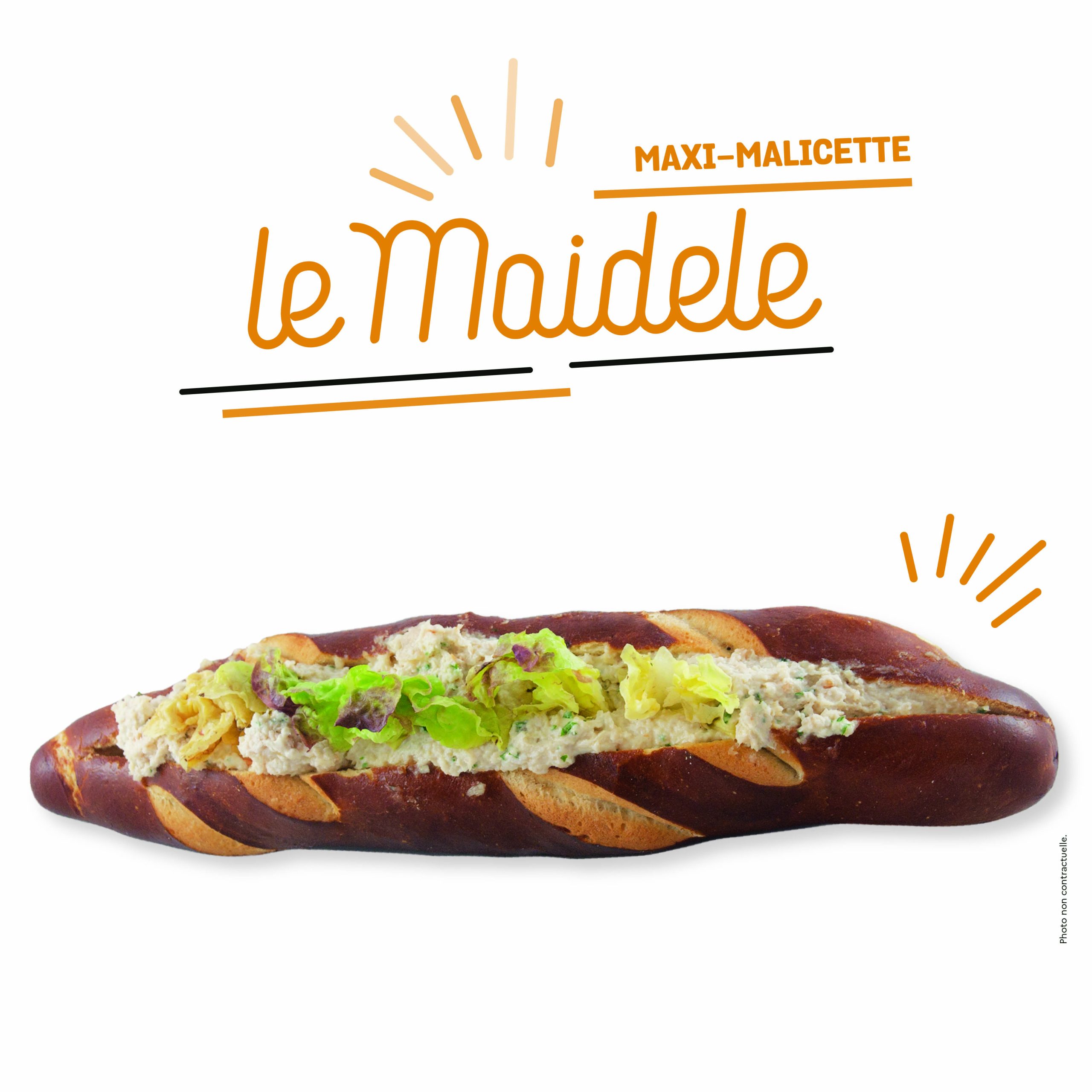 Pain malicette, émincé de poulet, mayonnaise, salade
